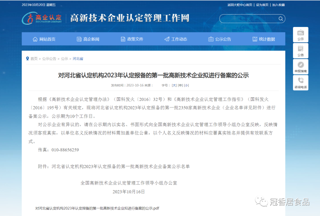 冠香居公司被認定為高新技術企業